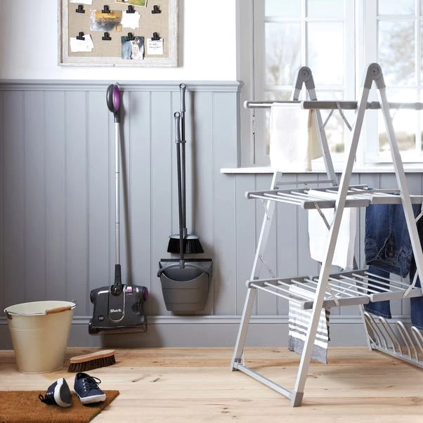Effortlessly clean your floors with this folding long handle dustpan and brush set, designed to let you sweep floors whilst standing before storing it away for future use.