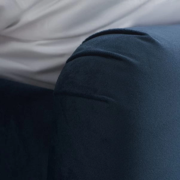 The Brompton Midnight Blue Fabric Bed Frame is a luxuriously comfortable bed frame with a generously cushioned headboard. Perfect for the modern bedroom, it is upholstered in a classy midnight blue fabric.