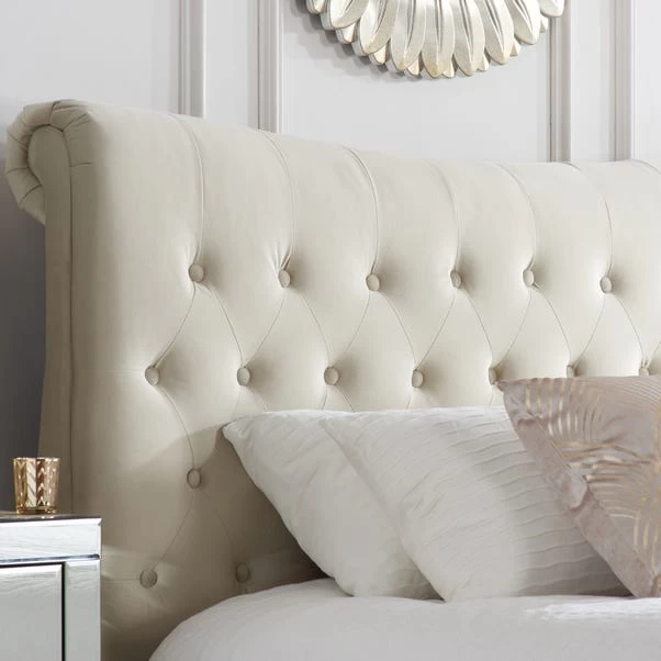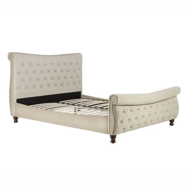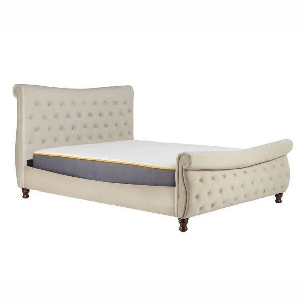 Featuring a beautiful deep-diamond quilted headboard and foot end, the Copenhagen Fabric Bed Frame would be a perfect match for both traditional and contemporary bedrooms. It is upholstered in luxurious polyester with complementary dark wood feet.
