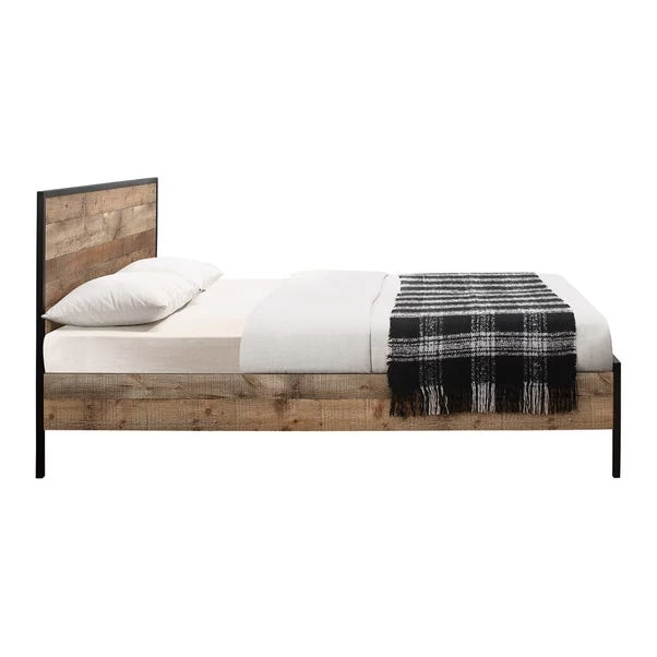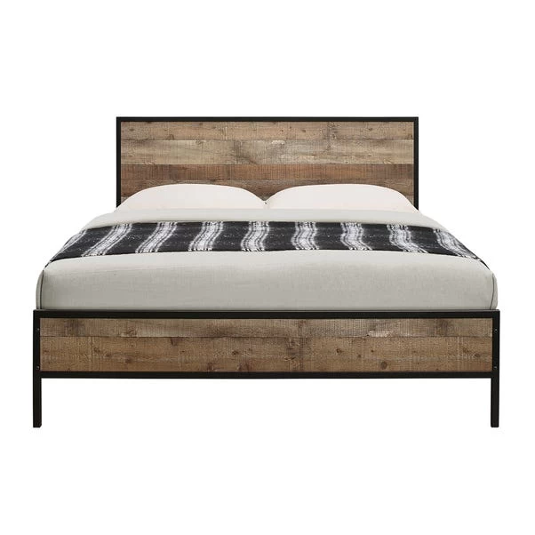 - Industrial-chic headboard and footboard with metal framing