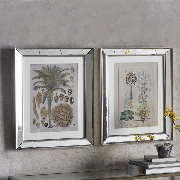 Bring a touch of the outside in with this set of 2 wall arts featuring beautiful tropical plants print with Gold foil highlights, imbedded inside bevelled mirror glass frame for a polished look.