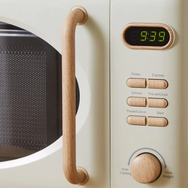 Designed with a modern sage colourway, this microwave boasts a generous 20 litre capacity with a high 700W power output. Ideal for larger family households, this microwave features a digital clock with a 60 minute timer which you can set to cook and reheat your meals, and a defrost setting suitable for all meal types and times of eating. Crafted with an easy to remove 24.5cm glass turntable, this microwave features a child lock for added peace of mind.