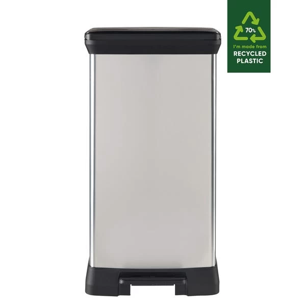 An ideal refuse solution for around the home or workplace, this bin is lightweight, hardwearing and easy to clean. This bin is elegant and contemporary with a stylish metal effect that does not leave fingerprints and does not rust. With a generous 50 litre capacity, this pedal bin is ideal for your kitchen, bathroom, or anywhere else. This bin is made in the UK, from 70% recycled plastic.