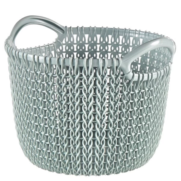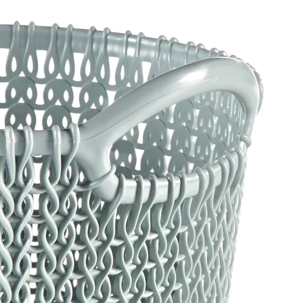 Crafted with a knitted design, this round basket is made from durable plastic with ergonomic handles for comfortable use, available in a choice of colours.