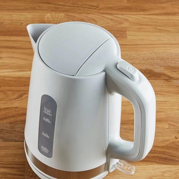 Designed with a 1.7L capacity and a 3000W power output, this plastic white kettle features an automatic opening lid for added convenience and an on/off switch with red indicator light ideal for low light situations.