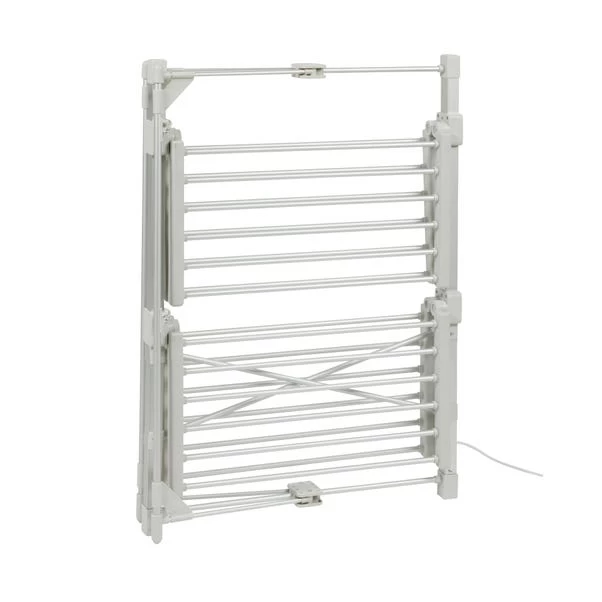 Heated to speed up the drying process, this two-tier airer features a vertical design that folds away neatly after use, perfect for saving valuable space in your home. Made from sturdy aluminium, this airer has 13m of drying space and is suitable for up to 10kg of washing.