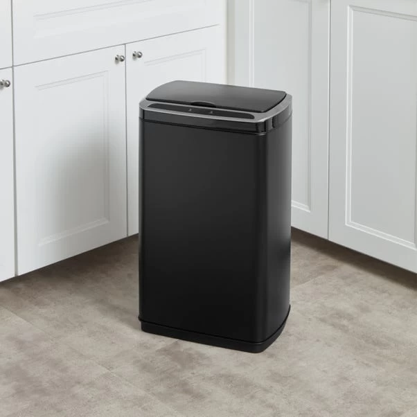 Dunelm 50L Black Rectangular Sensor Recycling Bin