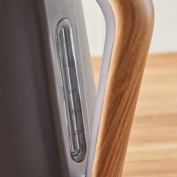 Designed in a modern matt grey colourway, this 1.7 litre contemporary jug kettle has a 3000W power output and a 360-degree cordless swivel base suitable for both left and right-handed use. With internal cup markers and water level gauge with cup marks for ease of refilling, this contemporary kettle has a removable water filter for ease of cleaning and a removable lid for ease of refilling.