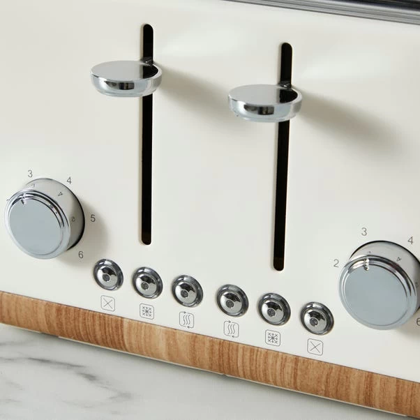 Designed in a modern cream colourway, this contemporary 4 slice toaster offers 1750W power output with variable width bread slots with centering guides suitable for the whole family. With Lift & Look function for added convenience, this 4 slice toaster features defrost functions for frozen bread, reheat functions for bread already toasted and mid cycle cancel functions.