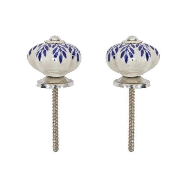 Dunelm Pack Of 2 Ceramic Floral Blue And White Door Knobs