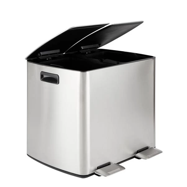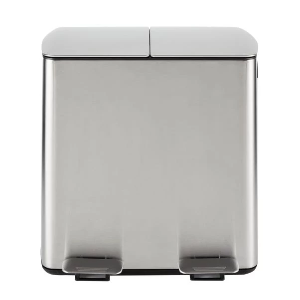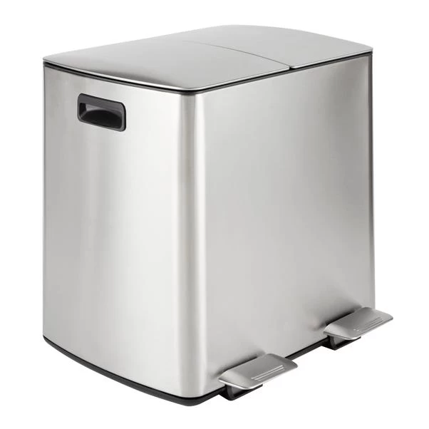 Stainless steel recycling bin with curved design and soft closing lids. Includes 2 x 20L removable inner buckets, making it easy to keep your recycling separated. Perfect for your kitchen or utility room!