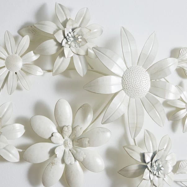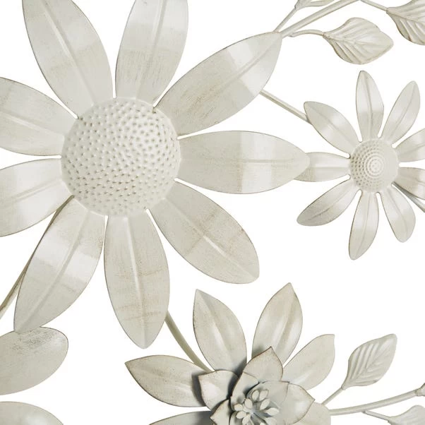 Designed with a cream and light gold brush stroke, this floral wall art piece would be a lovely addition to any wall. Designed with 7 flower heads with leaves and branch details, this wall art would complement a range of rooms whilst adding an interesting focal point.