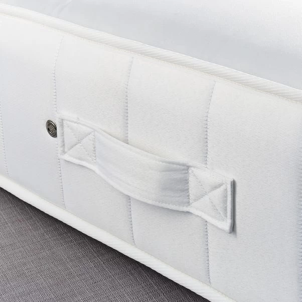 Enjoy an uninterrupted sleep with our Fogarty traditional 1000 pocket sprung mattress. Each spring is individually wrapped to create solo pockets which aid individual movement to help prevent disturbances, such as your partner moving in the middle of the night. Filled with Eco-Flex material made from recycled textile and clothing fibres and designed to provide an extra padded layer between you and the springs, this mattress has a medium firmness making it ideal for front and back sleepers. A quilted wire frame maintains the structure of the mattress for edge-to-edge support, the tufted finished keeps to filling evenly distributed for prolonged comfort and its quilted border features 4 handles to ensure it is easy to move.