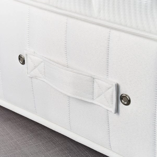 The layer of springs is encased in a deep eco-polyester filling made from recycled polyester fibres to provide additional padding whilst being kinder on the environment. The quilted boarder surrounds a wire frame to provide edge-to-edge support and is complete with 4 handles to make it easier to move. Air vents have been added to help keep the mattress breathable and help to regulate pressure and temperature.