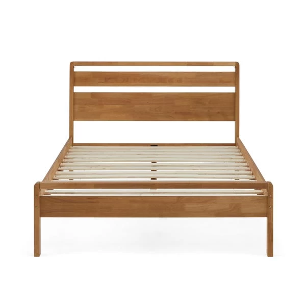Crafted from solid rubberwood, this sturdy bed frame features solid wood slats and two centre feet for added strength and durability. Completed with a rounded finger joint corner detail and a natural lacquer finish this bedstead will make a classic addition to any bedroom.