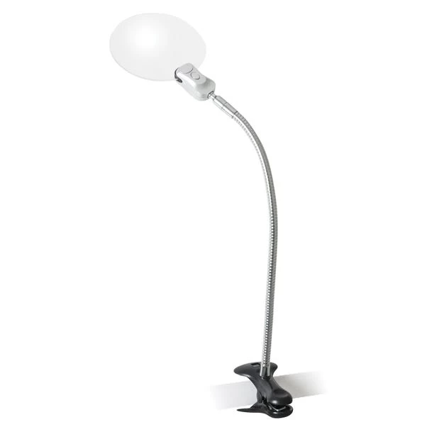 The lamp has an endless amount of uses such as reading, painting, jigsaw puzzles, needlework, crafts, repairing electronics, jewellery making and so much more! The main 130mm lens offers 2.5x magnification making it essential for any craftwork, project or reading. Also included on the head of the lamp is a 2.5cm diameter lens with an 8x magnification point, perfect for finer and more detailed work. Ultra lightweight, this lamp can be moved with no hassle and fixed to your desk, workbench or table using the strong clamp included. The flexible neck allows you to move the lens into any position needed for achieving the best focus on your work. Save on energy by using this lamp powered by 3 x LR1130 batteries. The lamp come preloaded with batteries so you can start enjoying your lamp straight away. The two LED low heat bulbs at the base of the lens provide a natural daylight effect, sitting at 9000 on the kelvin scale. The 9000k bulbs not only save the strain on your eyes but bring out the true colours of your work.