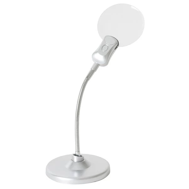 The main 85mm lens offers 2.5x magnification making it essential for any craftwork, project or reading. Also included on the head of the lamp is a 2cm diameter lens with an 8x magnification point, perfect for finer and more detailed work. Ultra lightweight, this lamp can be moved with no hassle to your preferred desk, workbench or table. The flexible neck allows you to move the lens into any position needed for achieving the best focus on your work. Save on energy by using this lamp powered by 3 x LR1130 batteries. The lamp comes preloaded with batteries so you can start enjoying your lamp straight away, The two LED low heat bulbs at the base of the lens provide a natural daylight effect, sitting at 9000 on the kelvin scale. The 9000k bulbs not only save the strain on your eyes but bring out the true colours of your work. The lamp has an endless amount of uses such as reading, painting, jigsaw puzzles, needlework, crafts, repairing electronics, jewellery making and so much more!