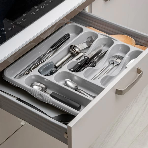 Keep your kitchen cutlery drawer organised with our fabulous large cutlery tray which comes in a classy grey colourway. It’s been made from 100% plastic which has been recycled, meaning it’s part of our eco-friendly range. With 7 handy compartments, you can keep your cutlery organised without having to fuss and make a racket.